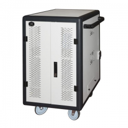 LINK - ARMADIO ALLOGGIAMENTO 30 TABLET CON RUOTE MULTIPRESE INCLUSE VENTOLE DI RAFFREDDAMENTO PORTA IN ACCIAIO TRAFORATA COLORE GRIGIO NERO