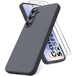 KIT CUSTODIA BACK COVER IN SILICONE 2 PELLICOLE PER SAMSUNG GALAXY S25 FE - GRIGIO SCURO