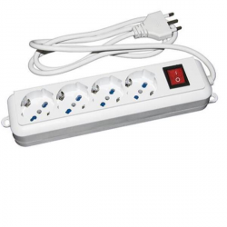 MULTIPRESA LINK 4 PRESE UNIVERSALI ITA/SCHUKO 10/16 A - SPINA 16 A CON INTERRUTTORE LKMP04