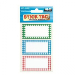 Etichette adesive Busta da 18 etichette in 3 colori. Dim. cm. 7 x 3 5. Conf. 10 buste.