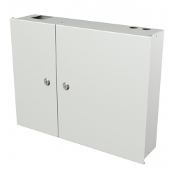 Box a muro per fibra ottica con due porte a battente dotate di serraturaDue serrature diverse con due chiavi ciascunaDue aperture per ingresso cavi nella parte superiore e inferiorePer PG16 più due ape
