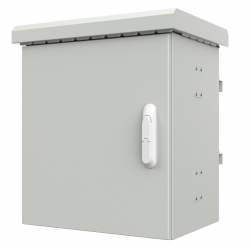 Armadio per videosorveglianza e telecomunicazioniRack a singola sezione con fissaggio a palo, fornito assemblato, modello MaxiPannello posteriore e pannelli laterali fissiSolida struttura in la