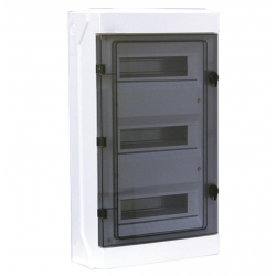 Quadro elettrico da muroDistributore da parete a 36 moduli DINAlloggiamento richiudibile per fusibili e elementi di commutazioneAnta frontale trasparenteAttacco a muro in plas