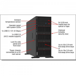 Lenovo ThinkSystem ST650 V3 7D7A - Server - tower 4U - a 2 vie - 1 x Xeon Silver 4510 / fino a 4.1 GHz - RAM 32 GB - nessun HDD - AST2600 - Gigabit Ethernet, 10 Gigabit Ethernet - senza SO -monitor: nessuno