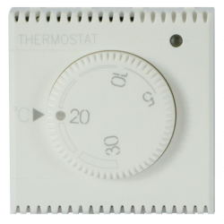 Termostato elettronico a manopola per controllo temperatura ambientaleSistema WHITEK S44Uscita con contatto in scambio NA+NC 5A (2A induttivi) 230VRange regolazione temperatura da 5 °C a 30