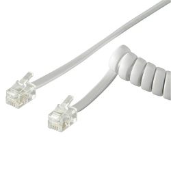 Cavo Telefonico Spiralato per Cornetta 2mt RJ10 4P4C Bianco