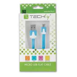 CAVO FLAT MICRO USB > USB 2.0 AZZURRO 1mt TECHLY