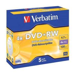 DVD+RW 4X 120MIN 4.7GB VERBATIM (43228) - CONFEZIONE 5 PEZZI