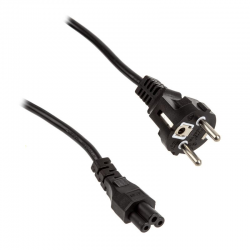 Cavo alimentazione elettrica solitamente utilizzato per collegare gli alimentatori per computer portatili o Notebook alla rete elettrica.Intestato con spina C5 a 3 poli accoppiati e spina elettrica Schutzkontakt CEE 7/7.