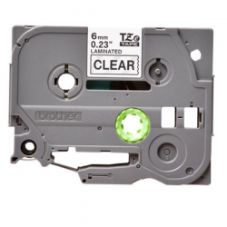 NASTRO DA 6MM NERA SU TRASPARENTE LAMINATO LUNGHEZZA 8 METRI