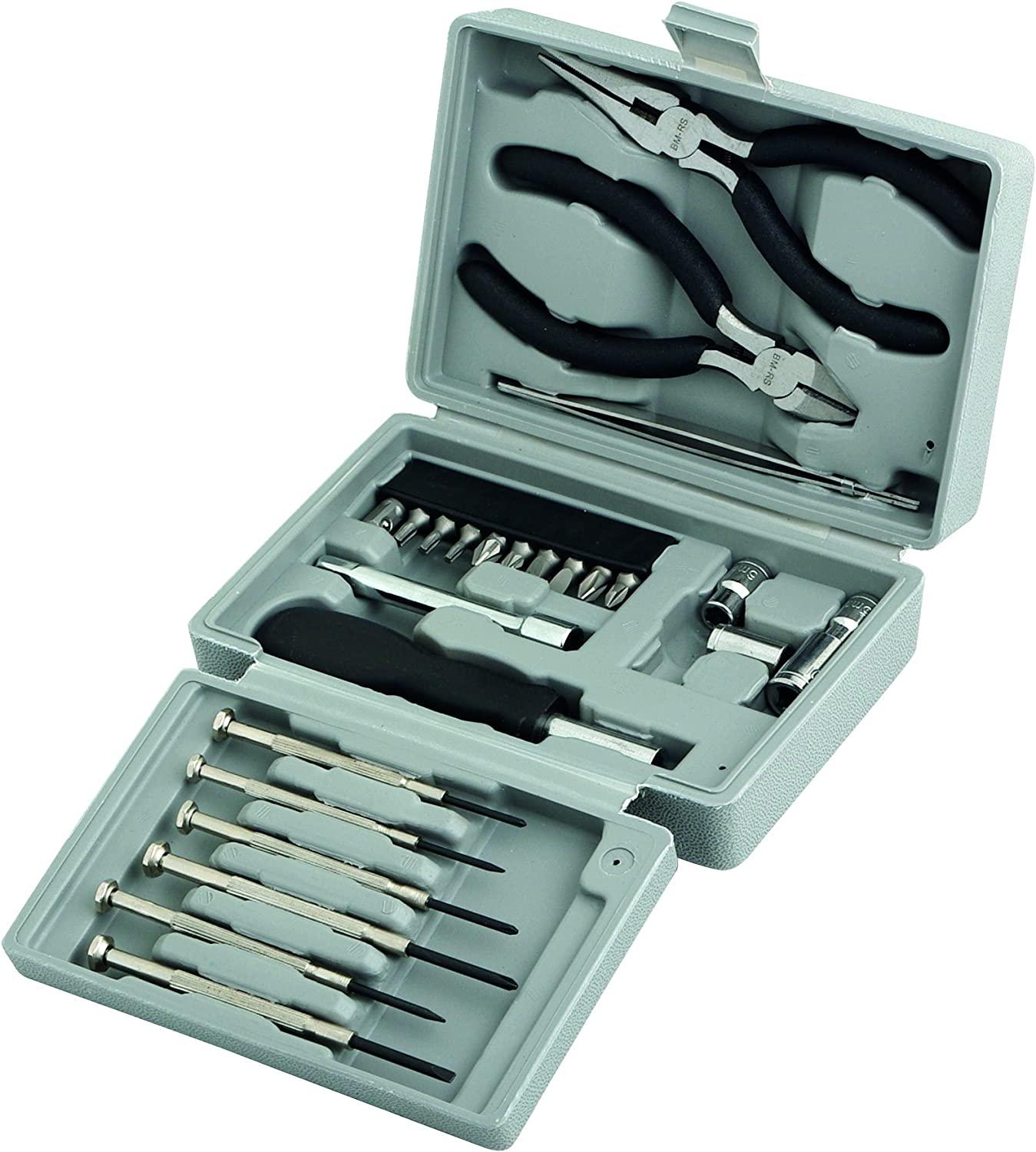 Mini valigetta comprensiva di 25 strumentiContenuto della confezione:6x micro-cacciaviti1x Mini pinza per taglio diagonale1x Mini pinza a becchi lunghi