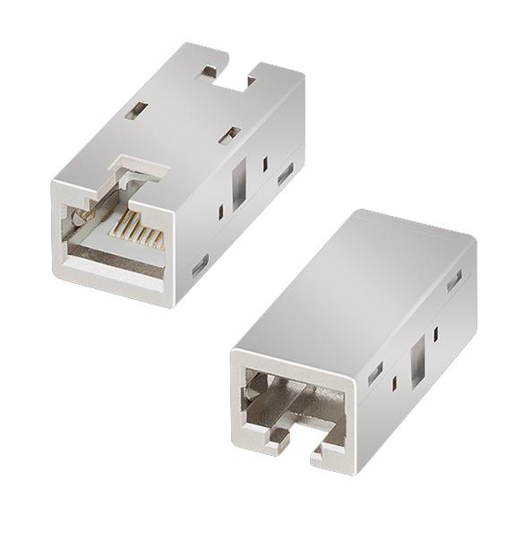 Accoppiatore RJ45 per il collegamento di due cavi patch RJ45Adatto a tutti i cavi patch schermati della categoria 5e, 6 o C6APer tutte le applicazioni di Classe D, E ed EA, inclusi 10 Gigabit Ethernet e PoESi