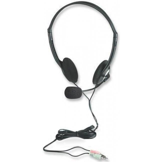 Cuffia Stereo con auricolari imbottiti in gomma piuma Microfono per comunicazioni hands free Facile da installare grazie alla connessione stereo da 3.5 mm Il lungo cavo di collegamento permette