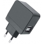 Trasformatore da muro con spina europea 2 poli con 2 porte USBFornisce una potenza massima di 2100mA compatibile con tutti i dispositivi USB portatiliIdeale come caricabatterie USB per fotocamere digitali, letto