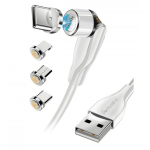Cavo magnetico di ricarica rapida 3 in 1 per la ricarica e il trasferimento dati. Con connettori intercambiabili a 8 pin, USB Type-C™ e Micro USB. Le spine vengono fissate magneticamente e possono essere ruotate di 360° e la testa del c