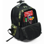 Zainetto trolley fantasia doppia tasca frontale 2 tasche laterali ruote scorrevoli resist spallacci imbotti regolabili tasca nel retro