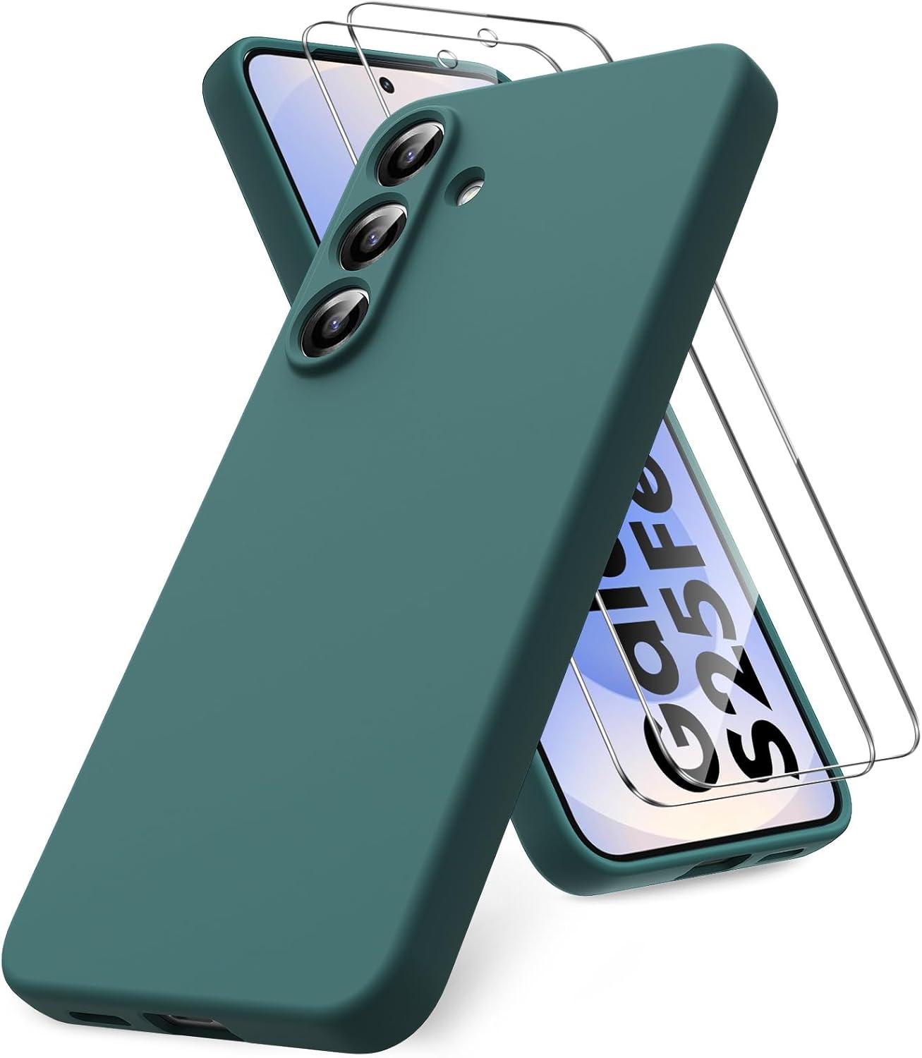 KIT CUSTODIA BACK COVER IN SILICONE 2 PELLICOLE PER SAMSUNG GALAXY S25 FE - VERDE NOTTE