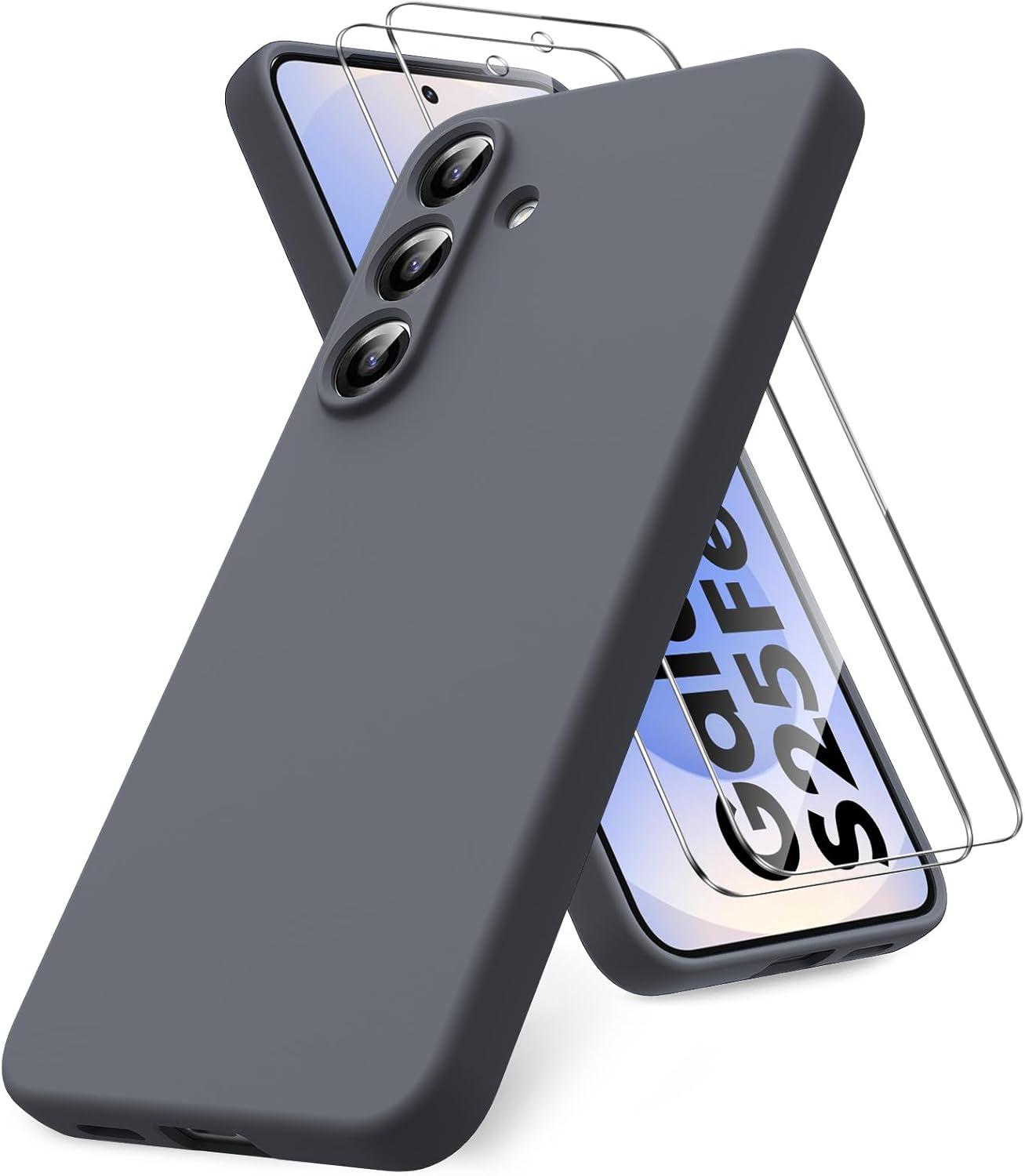 KIT CUSTODIA BACK COVER IN SILICONE 2 PELLICOLE PER SAMSUNG GALAXY S25 FE - GRIGIO SCURO