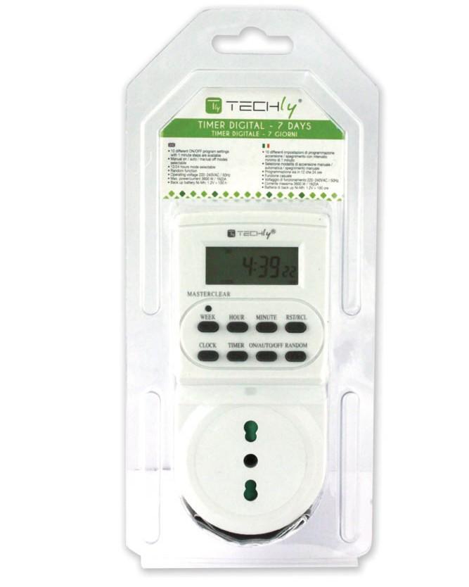 PRESA ELETTRICA TEMPORIZZATA DIGITALE 10/16A CON PROGRAMMAZIONE GIORN/SETTIMANALE TECHLY