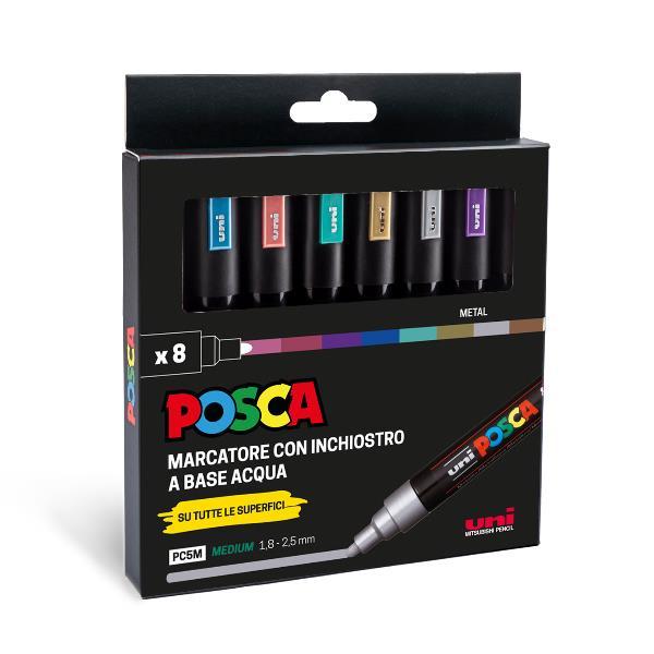 POSCA MARCATORE PUNTA MEDIA BLISTER 8 PZ COLORI METAL ASSORTITI