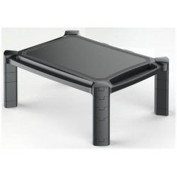 Elegante supporto da scrivania regolabile in altezza; offre una soluzione ergonomica e funzionale per riporre monitor, notebook, laptop, stampanti o altre apparecchiature da ufficioIl ripiano regolabile permette di posizionare il