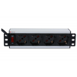 Multipresa di alimentazione a 4 posti UNELInstallabile a rack 10? occupa 1,5 UnitàConnessioni: 4 prese Universali Schuko / Italiane 45° con terraSpina italiana standard CEI-23-16