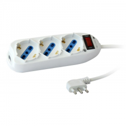 Presa multipla a 3 uscite per spine italiane e schukoPrese 10/16A bipasso/Schuko angolate a 45°Include messa a terra per ogni presaCon tasto reset che permette di riavviare la ciabatta dopo