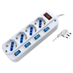 Presa multipla 4 uscite 10/16A Bipasso / SchukoProvvista di 4 interruttori indipendenti per attivare/disattivare ogni singola presa Con tasto reset che permette di riavviare la ciabatta dopo un sovraccarico che