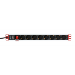 Multipresa da rack 19Uscite: 8 vieAlimentazione: singolo ingresso all estremità sinistraInstallazione frontaleFormato compatto salvaspazio da 1UCavo con spina Schuko angolata