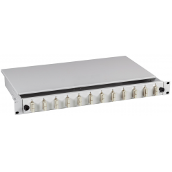 Cassetto ottico per montaggio a rack 19? 1HE Completo di 24 bussole SC Duplex monomodali con ferrula in metalloInclude due cassetti portagiunti impilabili, provvisti di coperchioPuò cont