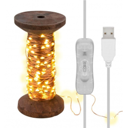 Bobina con cavo USB da 3 metri, lucine da 15 m con 150 micro LED bianco caldo (2700 K) e interruttore (On/Off)I micro LED bianco caldo creano un atmosfera accogliente, sia come singola fonte di luce sulla bobina che come decorazi
