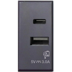 Caricatore USB universale 5V 3A Due uscite USB frontali: tipo A e tipo C Alimentazione 110-230V 50-60 HzAssorbimento a riposo < 0,1 W Consente la ricarica di telefoni cellular