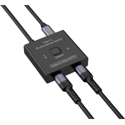 Switch bidirezionale USB-C™ che consente di collegare due dispositivi sorgente a un display oppure può essere utilizzato come splitter per poter collegare una sorgente a due monitor.Il pulsante di attivazione/disattivazione può