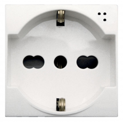 Presa Schuko bipasso (UNIVERSALE) Sistema WHITEK S442P+T 10/16A 250V~, con alveoli schermatiIlluminabile (segnalazione presenza rete)2 moduliColore RAL9010, bianco
