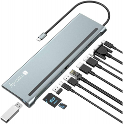 DOCKING STATION 12 IN 1 USB TYPE-C>VGA/HDMI/DP/LAN/CARD READER/VGA/USB TECHLY
