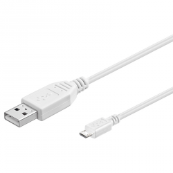 Cavo USB Hi Speed A/Micro B per collegamento di smartphone, lettori di memorie o macchine fotografiche a PC o MACCaratteristicheLunghezza 0,3 metriColore: biancoStandard: USB 2.0
