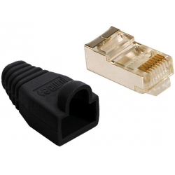 Plug RJ45 Cat.5E con copriconnettore Indicato per cavo tondo schermatoCompatibile con cavi flessibiliPin placcati oroConfezione da 100 pzColore nero, RAL 900