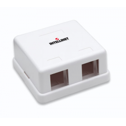 Presa a muro per due frutti keystoneSupporta frutti Keystone di rete RJ45 o telefonici RJ11/12Colore BiancoDimensioniLarghezza: 50 mmAltezza