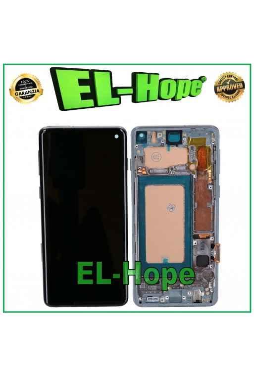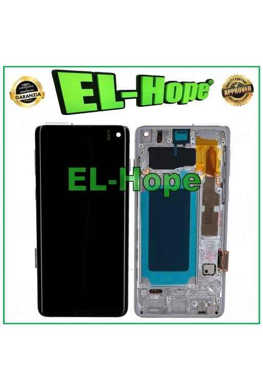 DISPLAY LCD OLED FRAME PER SAMSUNG GALAXY S10 SM-G973F TOUCH SCREEN VETRO BIANCO
