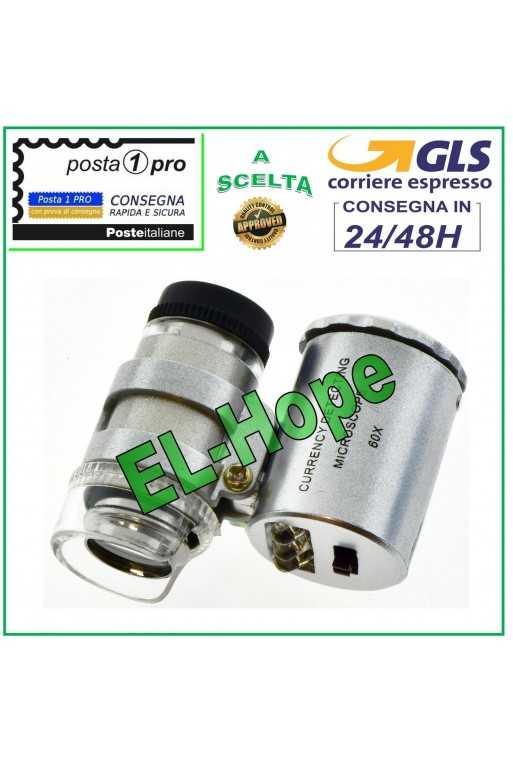 MICROSCOPIO 60X LENTE D' INGRANDIMENTO TASCABILE + LUCE UV LED PER PCB GIOIELLI