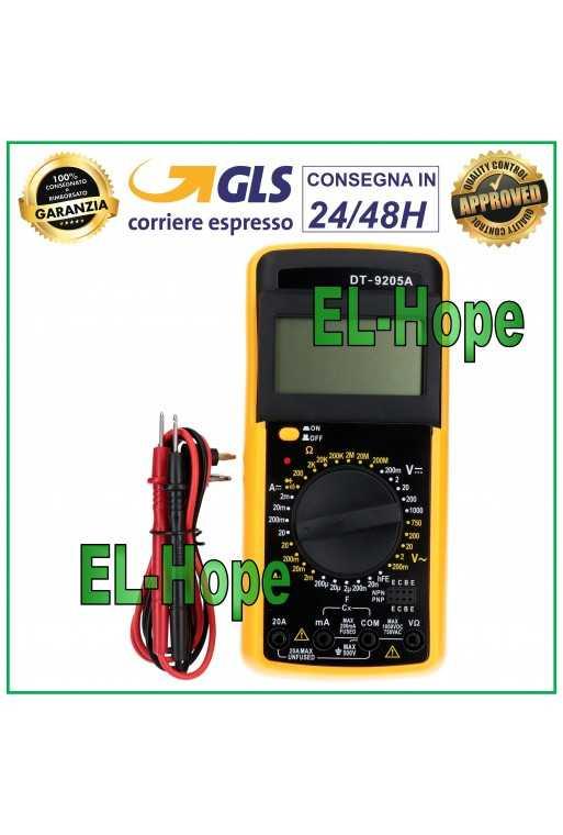 TESTER MULTIMETRO DIGITALE PROFESSIONALE DT9205A + COPPIA PUNTALI VOLT AMPERE