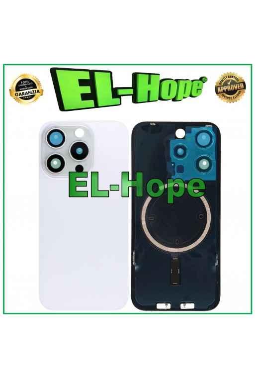CASE VETRO SCOCCA POSTERIORE COVER MAGSAFE PER IPHONE 15 PRO MAX TITANIO BIANCO