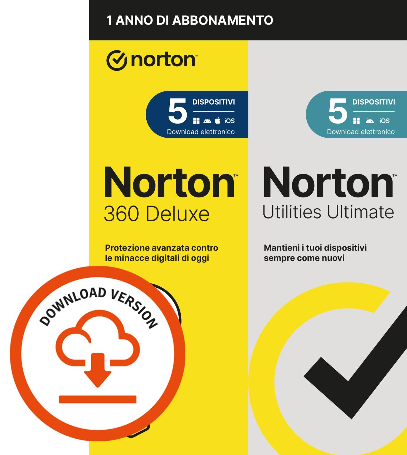 NORTON 360 DELUXE 2026 -ANTITRUFFA- 5 DISPOSITIVI 12 MESI 50GB + UTILITIES ULTIMATE - IT ESD