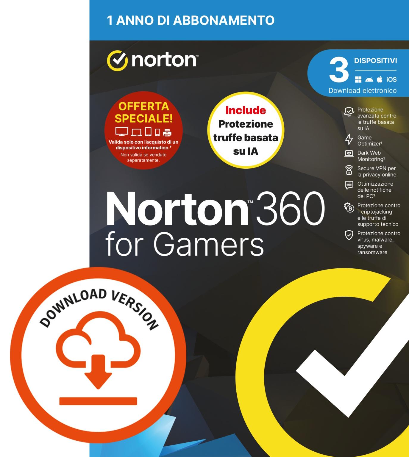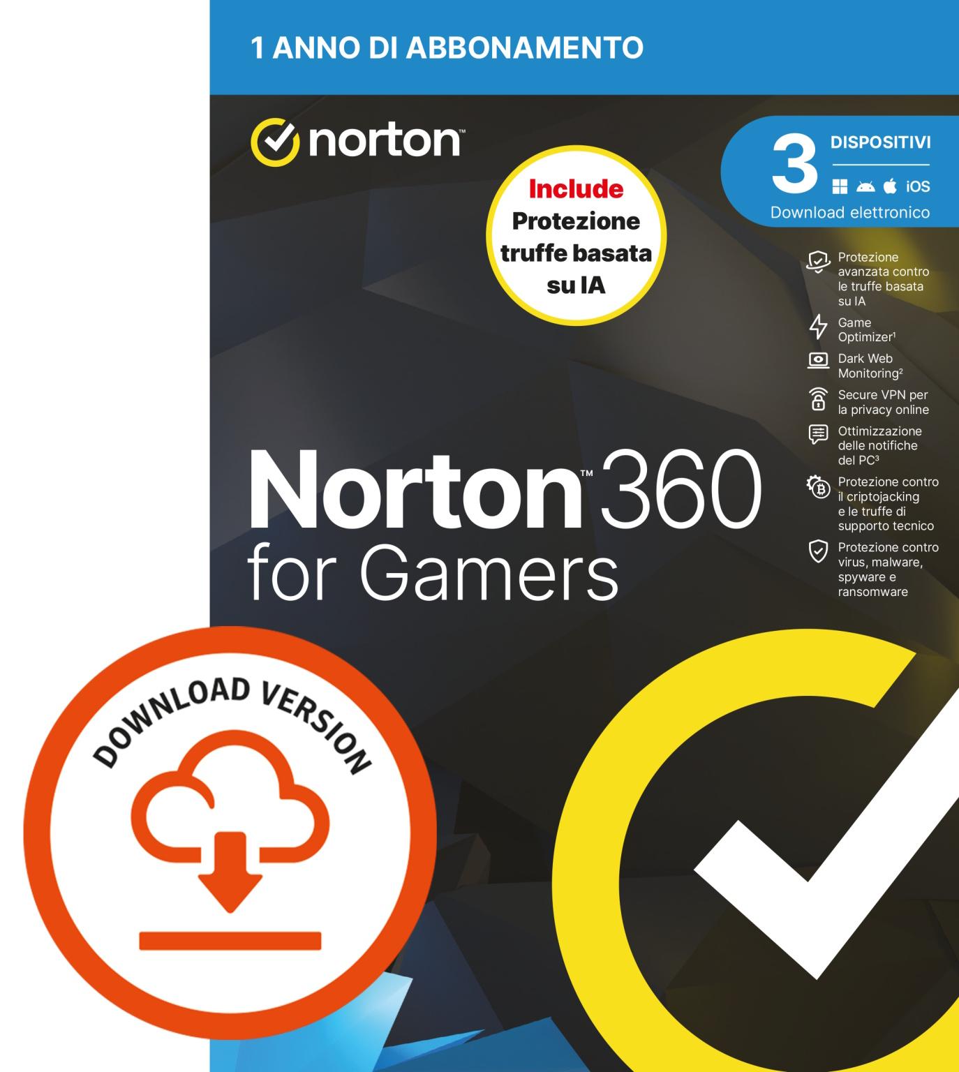 NORTON 360 FOR GAMERS 2026 -ANTITRUFFA- 3 DISPOSITIVI 12 MESI 50GB - IT ESD