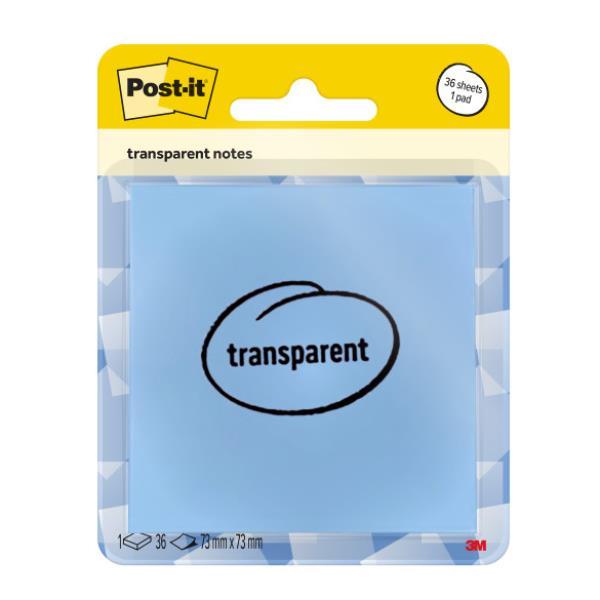 POST-IT TRANSPARENT NOTES 73 X 73MM 36 SHEETS/PAD WASHED DENIM BLUE